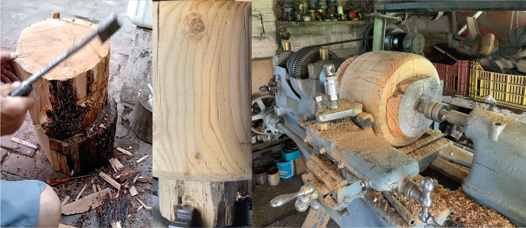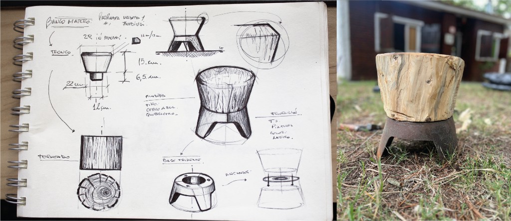 La parte superior del banco no se fabrica. Se elige. Cada tronco tiene su historia, su veta, su densidad, su carácter. Puede estar quemado, resaltando su textura y su fuerza, o simplemente curado, respetando su estado natural. Eso depende de la impronta del artesano que lo trabaja. Por eso no hay dos Bancos Materos iguales. Y eso no es un detalle: es el concepto.
